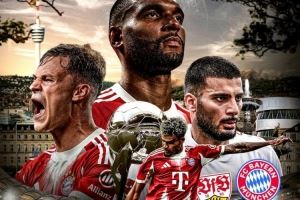 拜仁官方社媒发布了德超杯海报,迪亚斯、基米希、若纳坦-塔、翁达夫出镜。